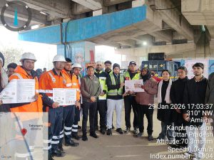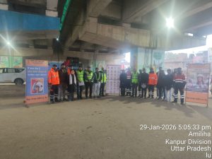 खबर की तहतक ✍️| कानपुर संवाददाता कानपुर। सड़क सुरक्षा जीवन रक्षा अभियान के तहत नेशनल हाईवे अथॉरिटी ऑफ इंडिया (NHAI) द्वारा गुरुवार को बिठूर–कानपुर हाईवे पर सड़क सुरक्षा को लेकर व्यापक जनजागरूकता अभियान चलाया गया। यह कार्यक्रम प्रोजेक्ट डायरेक्टर पंकज यादव के निर्देशन में मंधना और तातीयागंज क्षेत्रों में आयोजित किया गया। अभियान के दौरान सड़क सुरक्षा से जुड़े व्यवहारों पर आधारित एक प्रभावशाली नुक्कड़ नाटक का मंचन किया गया, जिसमें बिना हेलमेट वाहन चलाना, नशे की हालत में ड्राइविंग, तेज रफ्तार, ओवरलोडिंग तथा लापरवाही से वाहन चलाने जैसे खतरनाक कृत्यों के गंभीर दुष्परिणामों को रोचक और प्रभावी तरीके से प्रस्तुत किया गया। नुक्कड़ नाटक और जागरूकता गीतों के माध्यम से आमजन को यह संदेश दिया गया कि सड़क पर छोटी सी लापरवाही भी जानलेवा साबित हो सकती है। कार्यक्रम के दौरान राहगीरों और वाहन चालकों को सड़क सुरक्षा से संबंधित पम्पलेट भी वितरित किए गए, जिनमें हेलमेट और सीट बेल्ट के उपयोग, निर्धारित गति सीमा का पालन, नशामुक्त ड्राइविंग और यातायात नियमों के पालन पर विशेष जोर दिया गया। इस अवसर पर सेफ्टी ऑफिसर संदीप तोमर, मैनेजर अनिल शर्मा, इंजीनियर भास्कर, सीआरओ यशवंत, आरपीओ सुनील सचान, डॉ. शिवप्रकाश, नरेंद्र, पुष्पेंद्र, धर्मवीर, दुर्गेश सहित नुक्कड़ नाटक के कलाकार मौजूद रहे। सभी अधिकारियों ने आमजन से सड़क सुरक्षा नियमों का पालन करने और दूसरों को भी इसके लिए प्रेरित करने की अपील की। एनएचएआई अधिकारियों ने बताया कि इस तरह के जागरूकता कार्यक्रमों का उद्देश्य सड़क दुर्घटनाओं में कमी लाना और लोगों को सुरक्षित यात्रा के प्रति संवेदनशील बनाना है। अभियान के तहत आगे भी विभिन्न स्थानों पर ऐसे कार्यक्रम आयोजित किए जाएंगे। — खबर की तहतक Post Views: 236 Post navigation आलापुर में UGC विधेयक के विरोध में उमड़ा जनसैलाब, शांति मार्च में सभी वर्गों की ऐतिहासिक भागीदारी UP Board Exam 2026: नकल पर नकेल कसने को यूपी बोर्ड सख्त, बाहरी तत्वों पर नजर रखेगी LIU