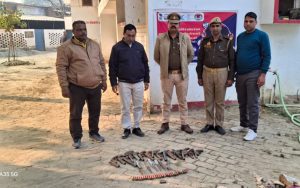 खबर की तहतक | अम्बेडकरनगर | 10 जनवरी 2026 जनपद अम्बेडकरनगर में कानून-व्यवस्था को सुदृढ़ बनाए रखने के उद्देश्य से पुलिस प्रशासन द्वारा चलाए जा रहे ऑपरेशन क्लीन के तहत बड़ी कार्रवाई की गई। थाना सम्मनपुर पर पंजीकृत आर्म्स एक्ट के कुल 22 अभियोगों से संबंधित अवैध हथियारों को माननीय न्यायालय के आदेश पर नियमानुसार नष्ट कराया गया। यह कार्रवाई पुलिस अधीक्षक अम्बेडकरनगर के निर्देशन, अपर पुलिस अधीक्षक (पश्चिमी) के मार्गदर्शन एवं क्षेत्राधिकारी नगर के पर्यवेक्षण में संपन्न हुई। माननीय न्यायालय अपर सिविल जज (सी.डी.)/ए.सी.जे.एम. जनपद अम्बेडकरनगर/अयोध्या के आदेश के क्रम में उपजिला मजिस्ट्रेट अकबरपुर द्वारा गठित टीम ने यह प्रक्रिया पूरी की। न्यायालय के निर्देशानुसार थाना सम्मनपुर में पंजीकृत मामलों से बरामद तमंचा एवं रामपुरी चाकुओं को हथौड़े से तोड़कर नष्ट किया गया। यह कार्रवाई मजिस्ट्रेट की उपस्थिति में पूर्ण पारदर्शिता और विधिक प्रक्रिया का पालन करते हुए की गई। नष्टिकरण की कार्रवाई में उपस्थित टीम श्री रमेश चन्द्र पाण्डेय, नायब तहसीलदार सिकन्दरपुर श्री अजय सिंह, राजस्व निरीक्षक सिकन्दरपुर दिनेश कुमार सिंह, थानाध्यक्ष सम्मनपुर हे0का0 धर्मेन्द्र कुमार सरोज, आर्मोरर पुलिस लाइन हे0मो0 अवधेश कुमार मौर्य, थाना सम्मनपुर पुलिस प्रशासन ने स्पष्ट किया कि इस प्रकार की कार्रवाइयों का उद्देश्य जनपद में अवैध हथियारों पर प्रभावी नियंत्रण स्थापित करना तथा आम नागरिकों में सुरक्षा की भावना को मजबूत करना है। आगे भी ऑपरेशन क्लीन के तहत अवैध गतिविधियों के विरुद्ध सख्त कार्रवाई जारी रहेगी। Post navigation हिमांशु विश्वकर्मा को न्याय दिलाने की मांग: लोकजन सोशलिस्ट पार्टी प्रदेश अध्यक्ष पहुंचे अम्बेडकर नगर यूपी में बेटियों की शिक्षा को बढ़ावा: एक ही स्कूल में दो बेटियां पढ़ेंगी तो एक की फीस होगी माफ