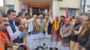 खबर की तहतक ✍️ जलालपुर (अम्बेडकरनगर)। उत्तर प्रदेश सहकारी ग्राम्य विकास बैंक शाखा जलालपुर में अध्यक्ष पद के लिए नामांकन प्रक्रिया शांतिपूर्ण एवं व्यवस्थित ढंग से सम्पन्न हुई। नामांकन कार्यक्रम में भारतीय जनता पार्टी के वरिष्ठ नेताओं, पदाधिकारियों तथा कार्यकर्ताओं की उल्लेखनीय उपस्थिति रही। नामांकन के दौरान पूर्व जिला अध्यक्ष रामप्रकाश यादव , रिंकू उपाध्याय, अमरनाथ सिंह एवं पूर्व जिला अध्यक्ष मिथिलेश त्रिपाठी सहित जिला मंत्री चंद्रिका प्रसाद और पंकज वर्मा उपस्थित रहे। इसके अतिरिक्त विनय सिंह, संदीप अग्रहरि , प्रवीण गौंड, शुभम् पांडे, सरिता निषाद समेत तमाम मंडल अध्यक्ष एवं पूर्व मंडल अध्यक्षों की सहभागिता ने कार्यक्रम को और मजबूती प्रदान की। कार्यक्रम में डॉ. आर.आर. शुक्ला, अनिल कुमार सिंह, मुन्ना सिंह, राकेश सिंह, धीरेंद्र सिंह, रामदरस उपाध्याय, संतोष गुप्ता, रामपति उपाध्याय, राजाराम मौर्य, रोशन सिंह, आनंद सिंह, सरिता निषाद, प्रभात जायसवाल, कृष्ण गुप्ता, केशव श्रीवास्तव, शिवराम मिश्रा, संजीव मिश्रा, देवेश मिश्रा, साधु यादव, मानिकचंद सोनी, राकेश पांडे, रणविजय सिंह, लालजी यादव, रत्नेश पाठक, अश्वनी, अखिलेश श्रीवास्तव सहित अनेक गणमान्य लोग मौजूद रहे। जहां एक तरफ भारतीय जनता पार्टी के वरिष्ठ नेता अशोक उपाध्याय के नामांकन में प्रस्तावक के रूप में तिलकधारी यादव, रिंकू उपाध्याय,छेदीलाल कनौजिया, अरुण कुमार मिश्रा, कृष्ण गोपाल, सोनू चौबे, अभिषेक मिश्रा, एवं दीपक शुक्ला आदि की सक्रिय भूमिका रही। वही दूसरी तरफ उत्तरप्रदेश सहकारी ग्राम विकास बैंक के अध्यक्ष पद हेतु किसी और उम्मीदवार ने नामांकन दाखिल नहीं किया जिससे दूसरी बार अध्यक्ष पद हेतु अशोक उपाध्याय को निर्विरोध चुनने के अवसर पर उपस्थित नेताओं और कार्यकर्ताओं ने सहकारी संस्थाओं को सुदृढ़ बनाने, किसानों एवं ग्रामीण क्षेत्र के हितों की रक्षा तथा पारदर्शी कार्यप्रणाली को प्राथमिकता देने का संकल्प व्यक्त किया। नामांकन प्रक्रिया के सफल आयोजन से क्षेत्र में सकारात्मक संदेश गया है। — खबर की तहतक Post Views: 238 Post navigation UPESSC परीक्षा कैलेंडर 2026 जारी: TGT-PGT और सहायक आचार्य की परीक्षाएं अप्रैल से जुलाई के बीच, देखें पूरी समय-सारिणी भव्य धार्मिक आयोजन से जलालपुर का वातावरण बना आध्यात्मिक धाम